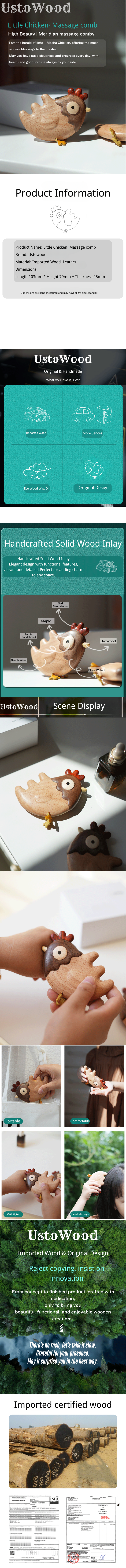 • UstoWood Wooden Chicken Comb - Natural Handcrafted Hair Comb